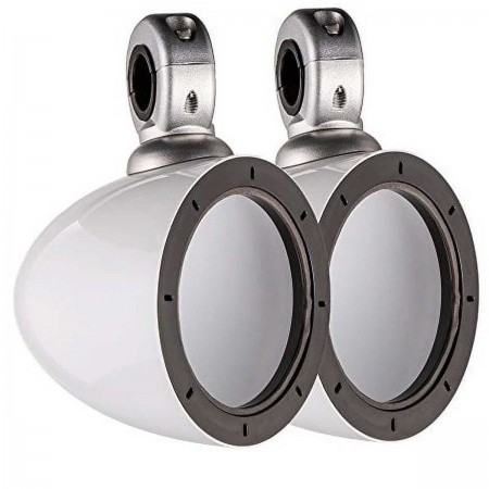 Vendidas por pares, las cajas de montaje KICKER KMMTESW acomodan tus altavoces marinos de 4"- en una torre o barra.