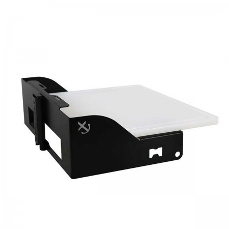 La tabla de corte deslizante negra Seanox es ideal para preparar cebo y pescado a bordo. Se suministra con base de acero inoxidable pintado epoxi y bandeja de polietileno.