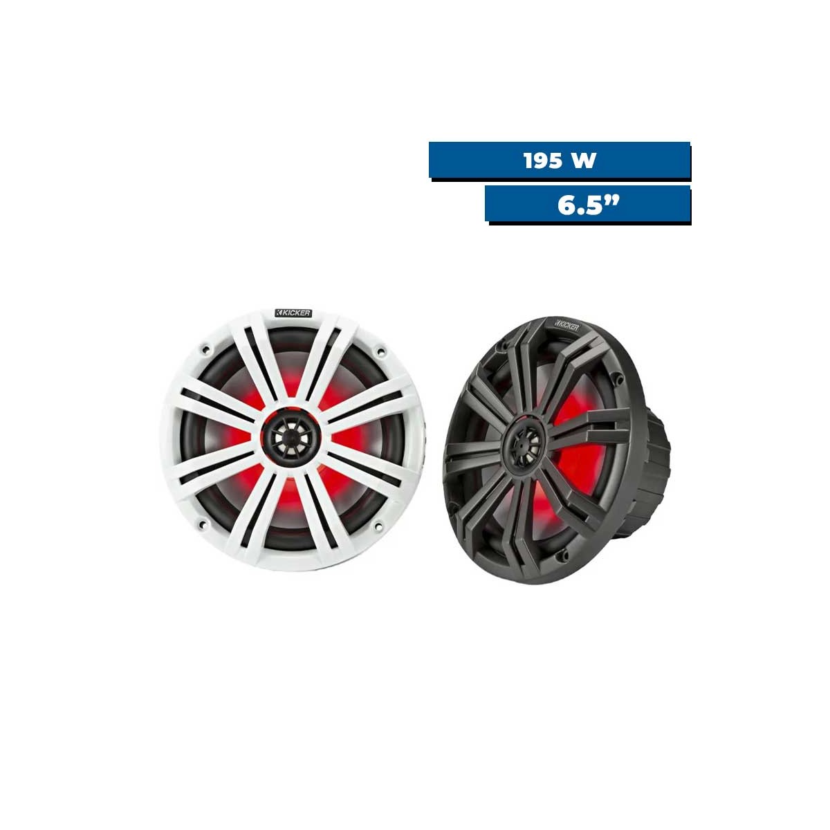 Diseñados para el mar, los altavoces- Kicker KM65 con LED ofrecen un sonido claro y equilibrado en un formato de 6,5 pulgadas. El cono de polipropileno y la suspensión de Santoprene son resistentes a los rayos UV y a la niebla marina.