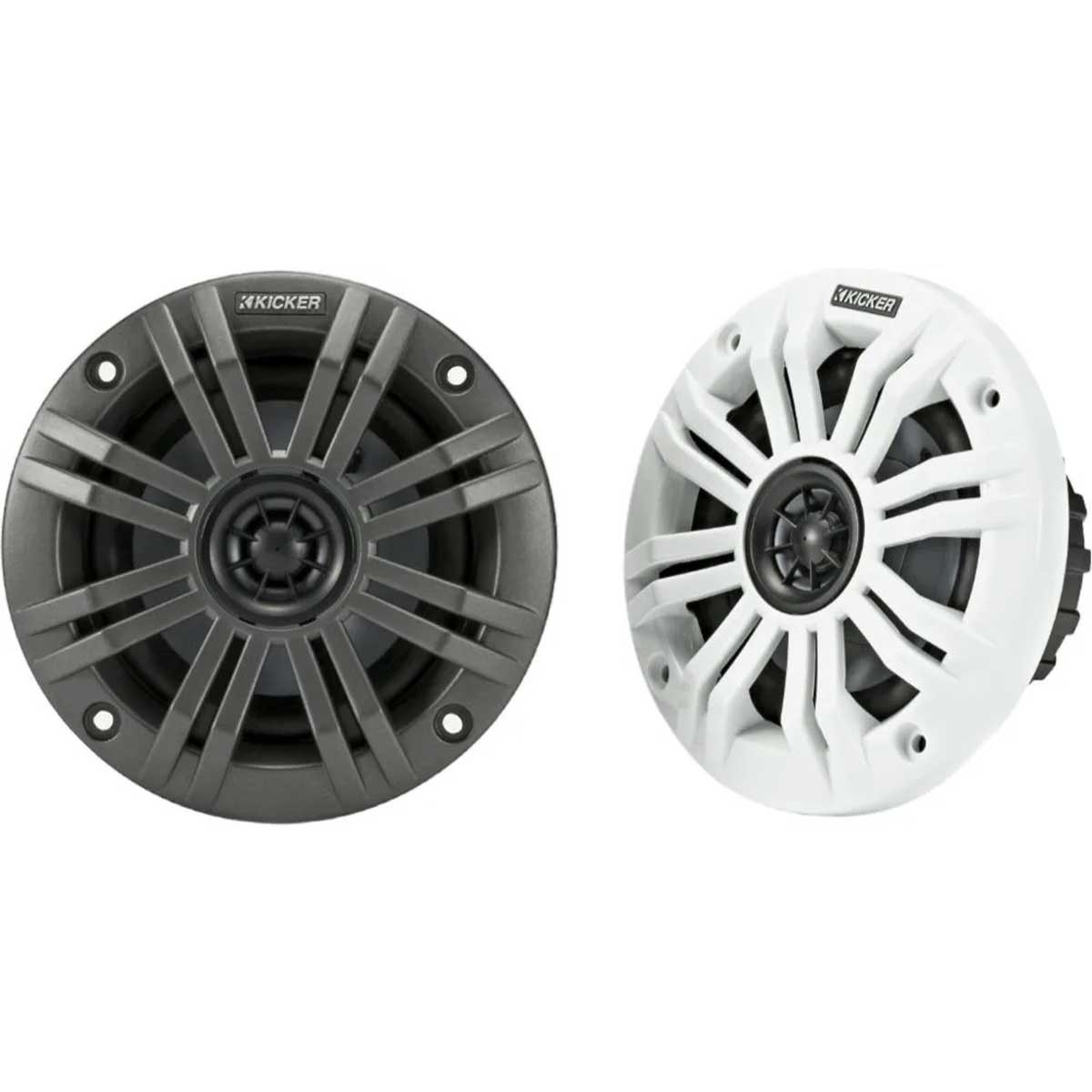 Diseñados para el mar, los altavoces KM4 de Kicker ofrecen un sonido nítido, incluso con viento y niebla. Estos altavoces coaxiales-de 4 pulgadas y 4 ohmios ofrecen 50 W de potencia continua y 150 W de pico, con una sensibilidad de 89 dB. Se suministran con rejillas blancas y negras para que combinen con el estilo de su embarcación, así como con bloques de terminales impermeables y tornillos de acero inoxidable 316L, por lo que son fáciles de instalar en su bañera.