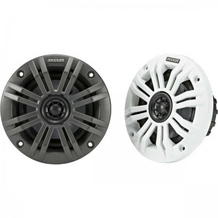 Diseñados para el mar, los altavoces- Kicker KM4 ofrecen un sonido claro y equilibrado en un formato de 4 pulgadas. El cono de polipropileno y la suspensión de Santoprene son resistentes a los rayos UV y a la niebla marina.