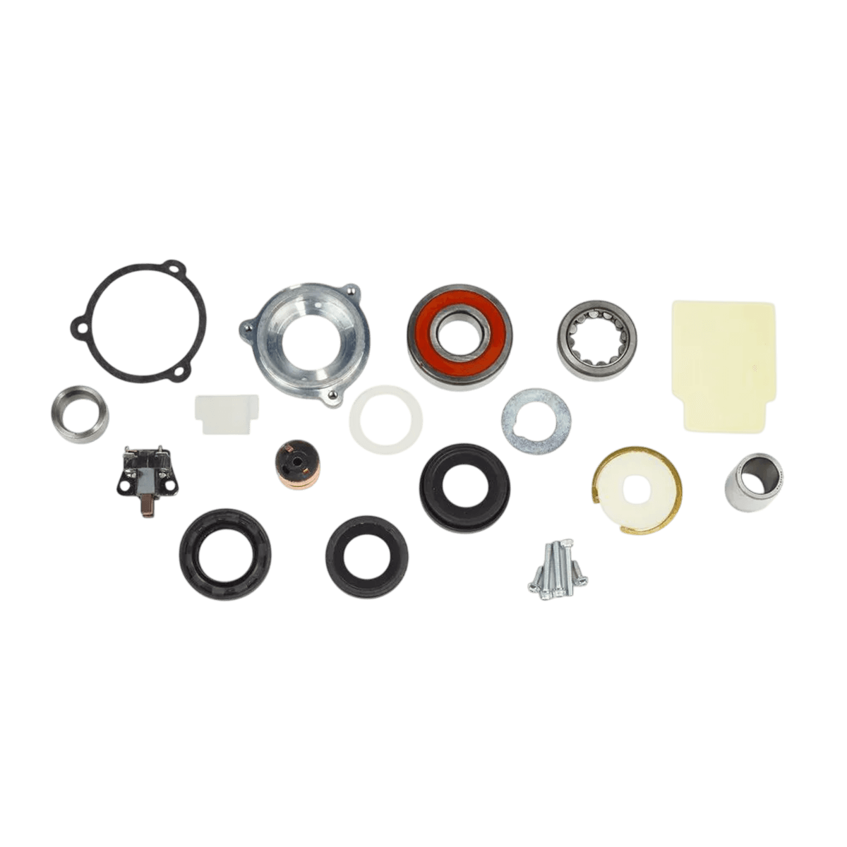 Kit de cojinetes, casquillos y portaescobillas- Prestolite para alternadores de la serie 8SC. Ideal para reparaciones de alternadores de embarcaciones, este kit restablece la rotación y el contacto eléctrico, reduce el ruido y prolonga la vida útil de la generación de energía a bordo.