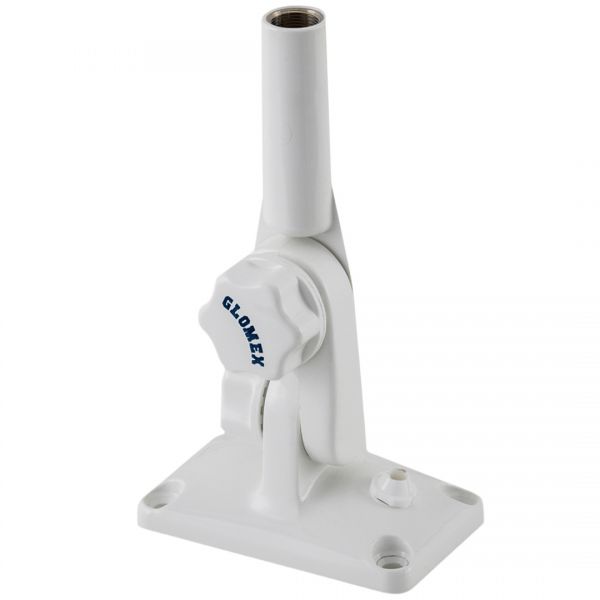 Soporte de doble articulación de nailon resistente a los rayos UV para montaje en cubierta o mamparo, con mecanismo de bloqueo moleteado.- Prensaestopas para cable coaxial. Para antenas Glomeasy: RA106SLSFME, RA106GRPFME y RA300.