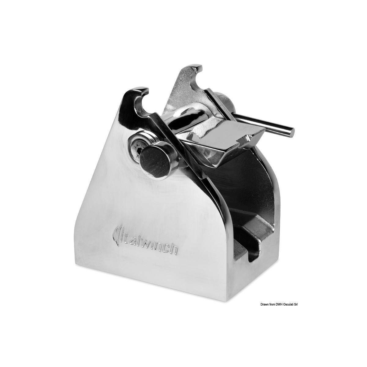 Bloqueo de cadena compatible con cadenas principales de 8 mm a 14 mm de diámetro con travesaño. Fabricado íntegramente en acero AISI 316.