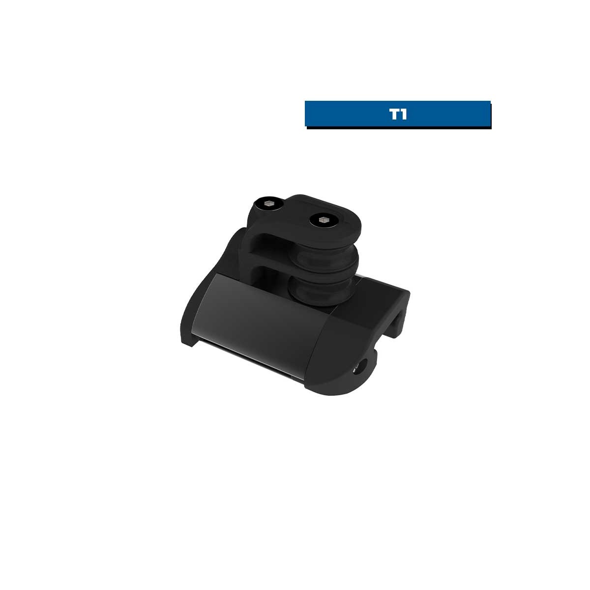 El tope de raíl de doble polea de control T1 HTX se instala en el extremo del raíl para detener el carro y proporcionar dos retornos finales limpios.