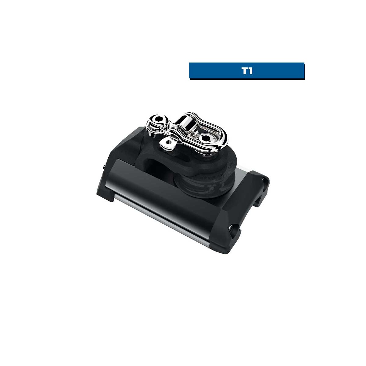El tope final con polea de control y cáncamo T1 se instala en el extremo del raíl para detener el carro del puño de escota y se utiliza para que el cabo de control trabaje limpiamente en lugar de que roce contra el tope final o el raíl. El ringot se utiliza como punto de amarre para completar u organizar el circuito de ajuste.