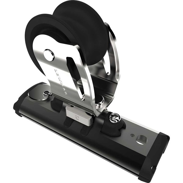 Una escota de génova bien guiadaEn el extremo del raíl, la escota de mayor desempeña una doble función. Asegura el extremo del carro y guía la escota de génova en línea, para un paso más suave y regular. Le resultará más fácil de ajustar, especialmente cuando la carga aumenta y cada poco de fricción cuenta.