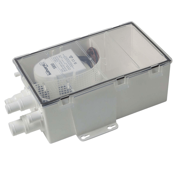 El sistema de tratamiento de aguas grises grande Attwood 24V es una solucion completa que incluye un deposito y una bomba Attwood Sahara Mk2 S800 de alto caudal, capaz de alcanzar hasta 40 litros por minuto.