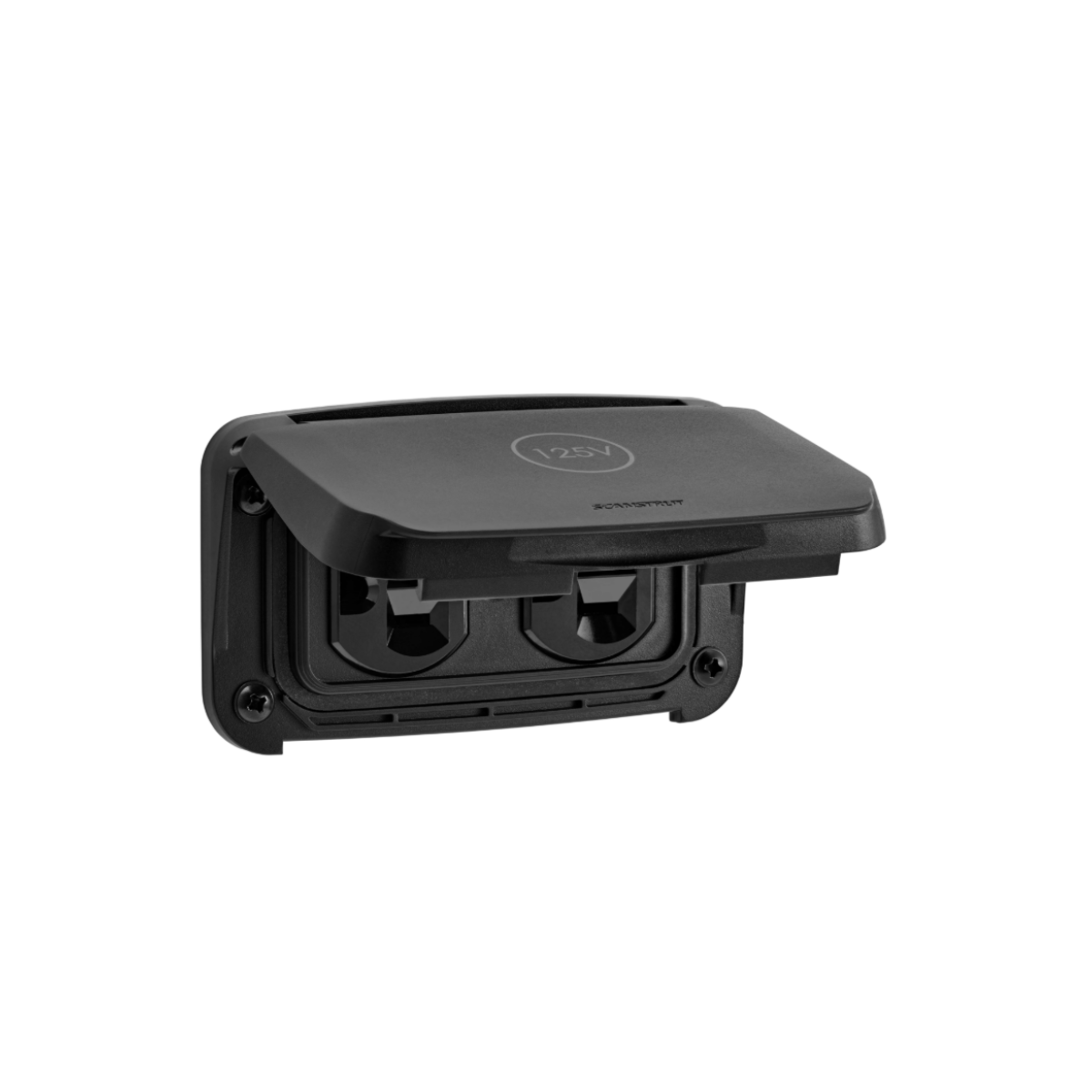 Disfrute de la comodidad de una toma de corriente doble de 125 V y 20 A a bordo. Esta toma de corriente estanca le permite disponer de energía allá donde vaya.