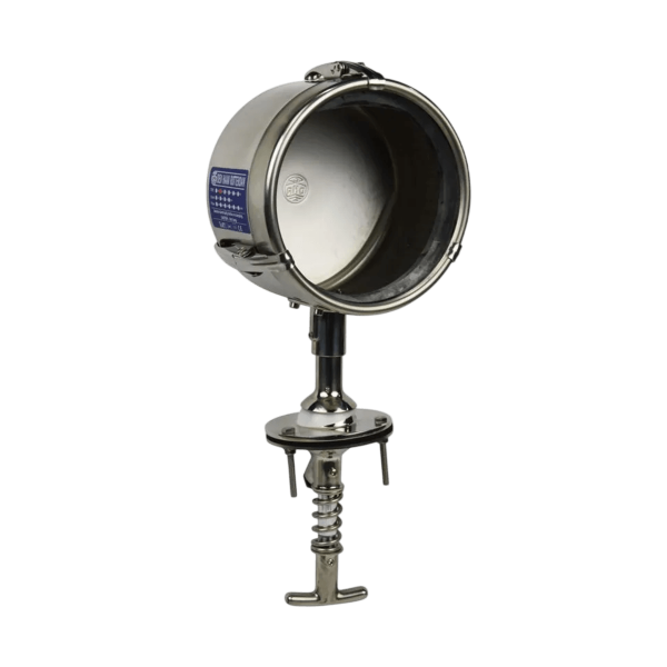 Este proyector DHR de 145 mm de diámetro está diseñado para maniobrar e iluminar a bordo desde el puente de mando. Se suministra sin lámpara, lo que le permite elegir la fuente de luz que mejor se adapte a su instalación. Su mando en el puente de gobierno facilita la maniobra a distancia, y su asa cerrada hace que su uso sea seguro.