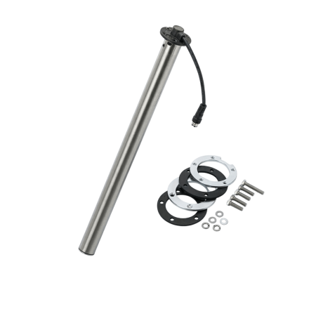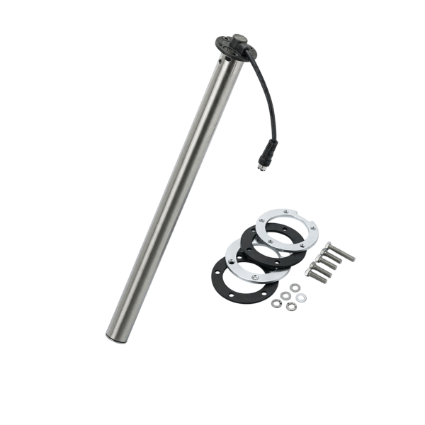 Sensor de nivel Veratron VDO con tubo de Ø54 mm en acero inoxidable 316, 800 mm de longitud, ideal para controlar fácilmente el nivel de un depósito de combustible o agua a bordo. Tecnología sin contacto para una medición fiable, con vacío-lleno 90-señal analógica de 4 Ohmios y alimentación de 6-24 V CC. Montaje SAE de 5 orificios de 54 mm, conector TE Superseal de 2 polos IP67, perfecto para entornos marinos.