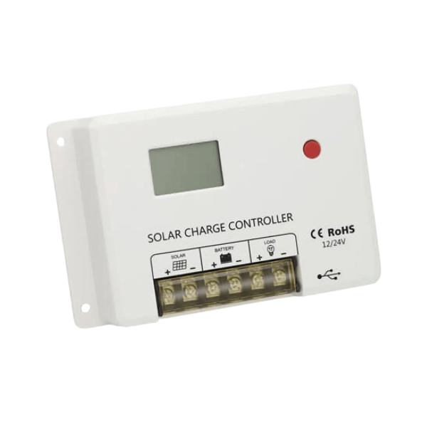Este regulador solar PWM de 30 A 12 V/24 V optimiza la carga de baterías de plomo o litio a bordo. Reconoce automáticamente la tensión de 12 V o 24 V, acepta una entrada fotovoltaica de hasta 50 V e incorpora una salida USB de 5 V / 2 A. Compacto y práctico, es adecuado para instalaciones solares marinas de hasta 450 W a 12 V y 900 W a 24 V.