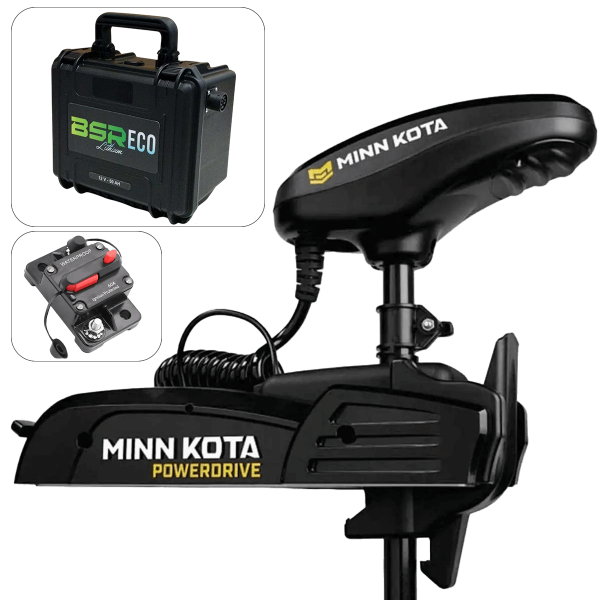 Comptoir Nautique le ofrece este completo pack que incluye un motor eléctrico delantero Minn Kota PowerDrive GPS 45 Lbs - 137 cm - 12V y una batería de litio BSR Eco G2 12V 50A.