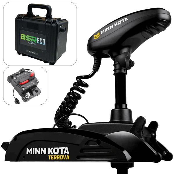 Comptoir Nautique le ofrece este completo pack que incluye un motor eléctrico delantero Minn Kota Terrova GPS 55 Lbs - 137 cm - 12V y una batería de litio BSR Eco G2 12V 50A.