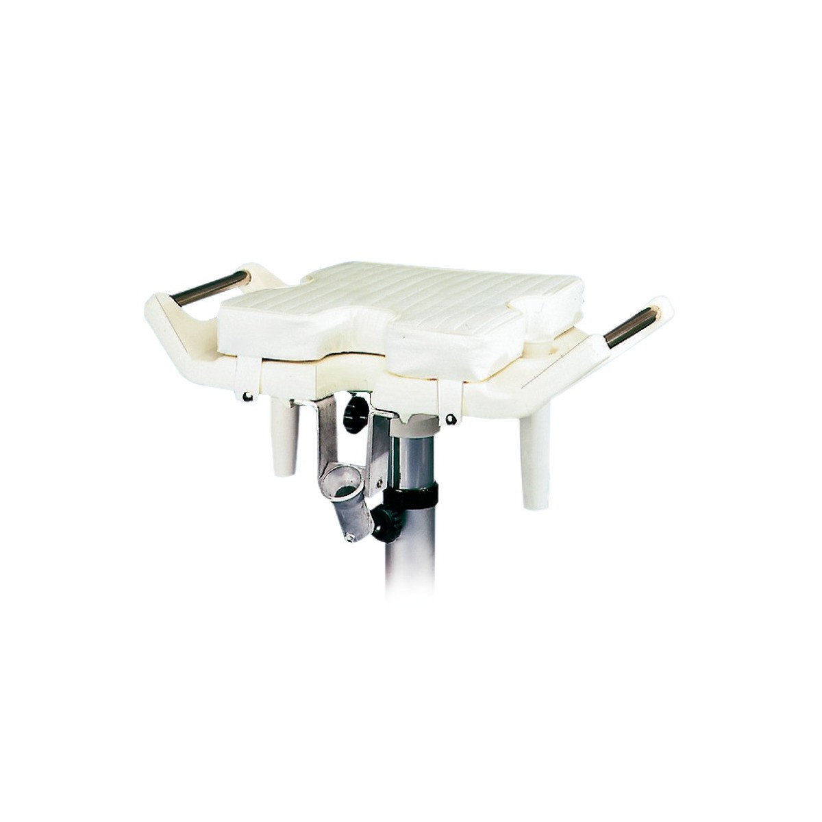 Asiento de pesca ideal para pilotar manteniendo las cañas al alcance de la mano.-Equipado con dos portacañas laterales basculantes semi-y un portacañas central basculante de aluminio-. Fabricado en polietileno blanco y acero inoxidable, sin columna ni cojines incluidos. Perfecto para lanchas rápidas,-cascos abiertos o semirrígidos-.