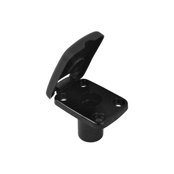 Este soporte para portacañas Attwood se monta a ras del regala o de la cubierta.