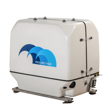 El Paguro 9000 proporciona 9 kVA (8 kW) de potencia continua con un motor diésel de 2 cilindros Lombardini LDW 702 que funciona a 3000 rpm, y un generador síncrono sin escobillas refrigerado por agua. Compacto e insonorizado, garantiza un ambiente sereno a bordo.