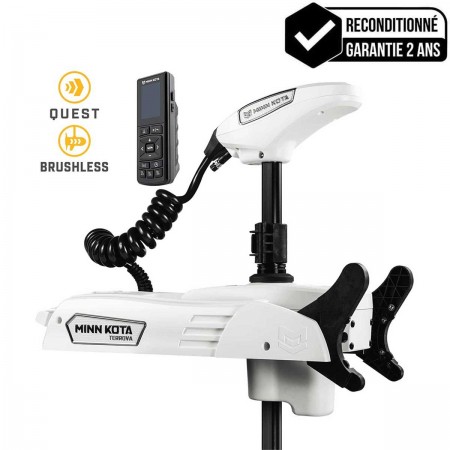 Reacondicionado y con 2 años de garantía, el motor eléctrico Minn Kota Riptide Terrova Quest ofrece una solución fiable y duradera para sus sesiones de pesca en alta mar. Con un motor sin escobillas y un eje más largo, puede montarse en embarcaciones más grandes.