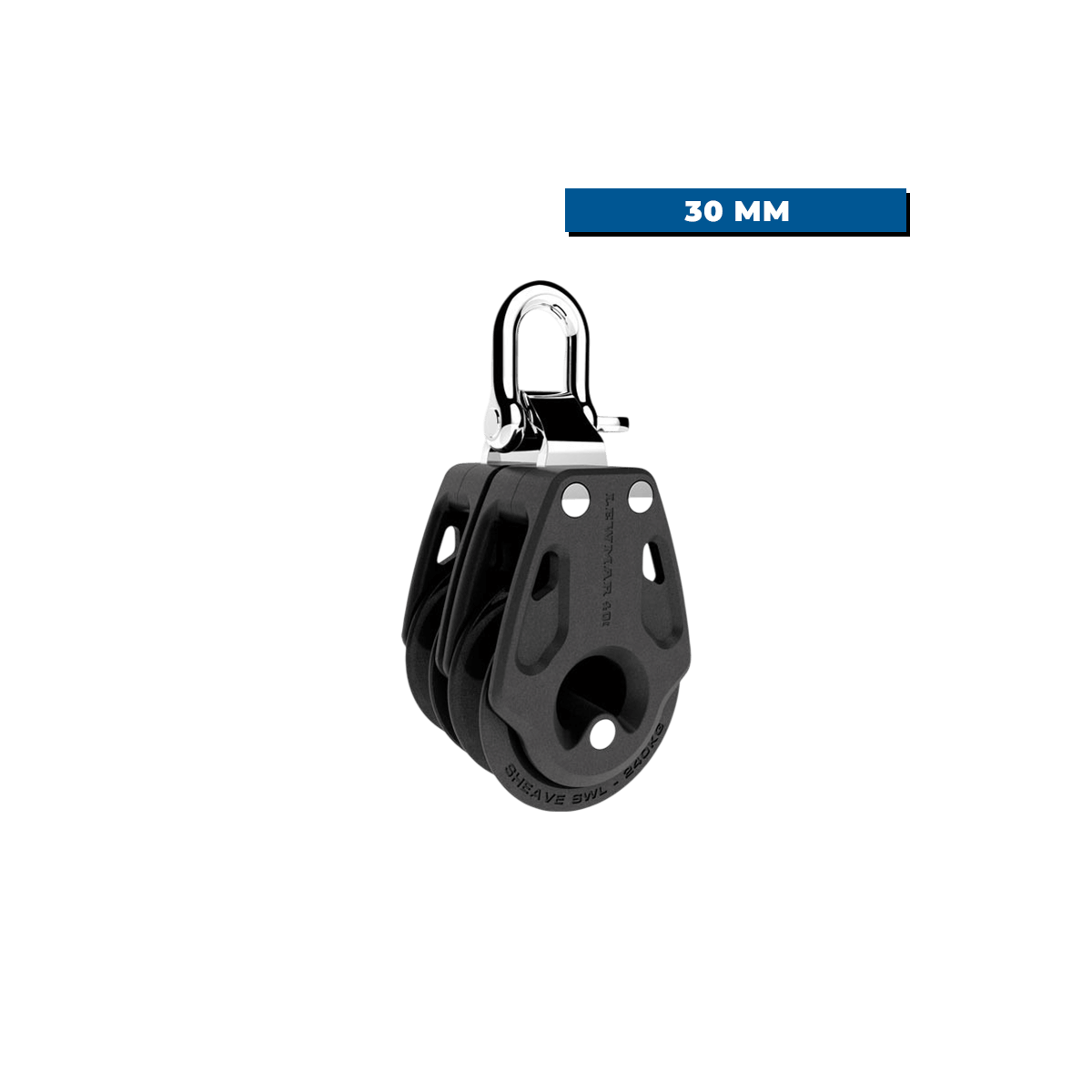 El bloque doble Control Lewmar 30 mm pesa sólo 47 g y soporta una carga de trabajo de 300 kg. Ideal para el control del cabo en embarcaciones de vela ligera y pequeños cruceros, está optimizado para el trimado manual. Su rodamiento de bolas de acero inoxidable reduce la fricción, y sus mejillas ventiladas son fáciles de enjuagar contra la arena y la sal.