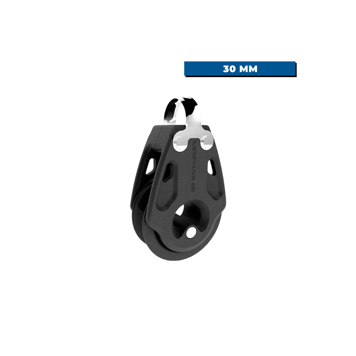 El bloque de cabeza fija Lewmar Control 30 mm pesa sólo 26 g y soporta una carga de trabajo de 200 kg, perfecto para el ajuste y control manual de cabos en embarcaciones auxiliares y pequeños cruceros. Su tecnología MRT y su rodamiento de bolas de acero inoxidable reducen la fricción para una maniobra suave, al tiempo que ofrecen una buena resistencia a los golpes. Las mejillas ventiladas facilitan el aclarado de la arena y la sal.