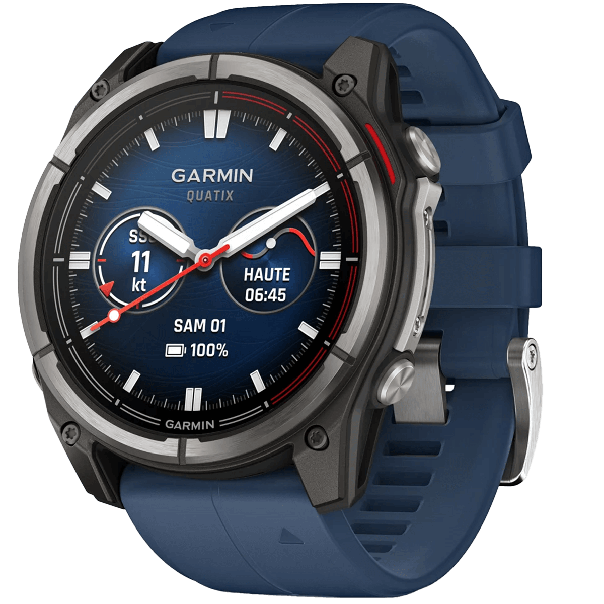 El reloj Garmin Quatix 8 está diseñado para navegadores exigentes. Cuenta con una pantalla AMOLED de 1,4″ protegida por un cristal de zafiro resistente a los arañazos, una robusta carcasa de polímero reforzado y un fondo de titanio.