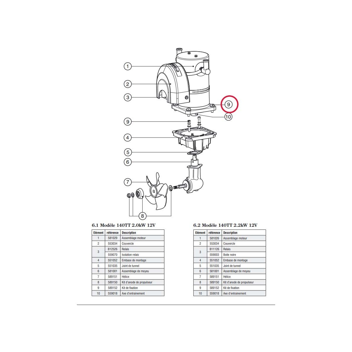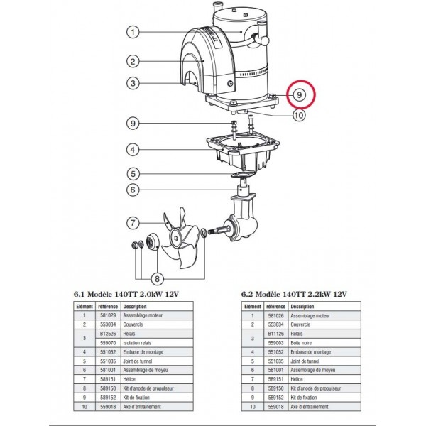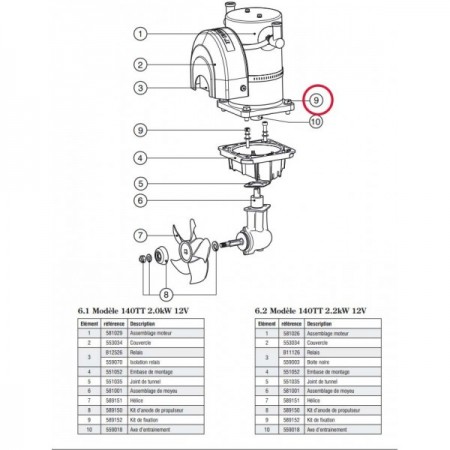 Kit de tornillos de fijación para el propulsor 140TT (ambos modelos) números de pieza 591482 / 590004 (IP) y 590003 / 590005 (IP)