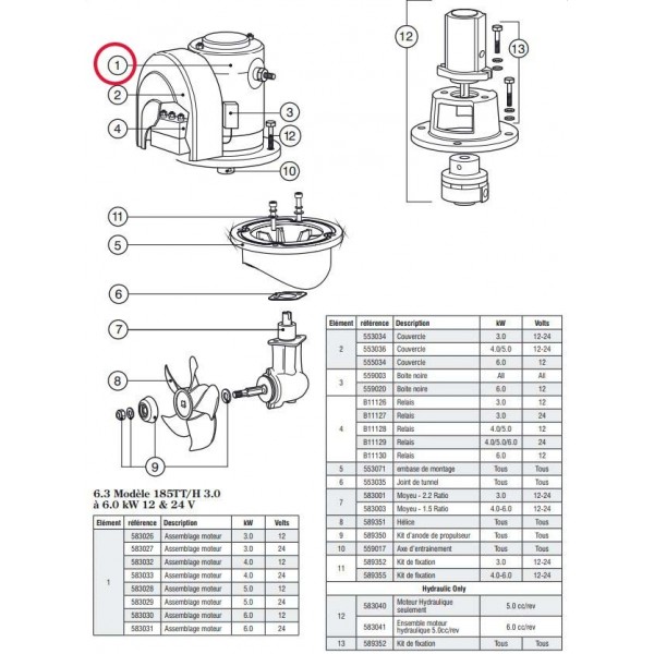 Conjunto motor para propulsor Lewmar 185TT 4.0kW 12V referencia 590009 / 590017 (IP)