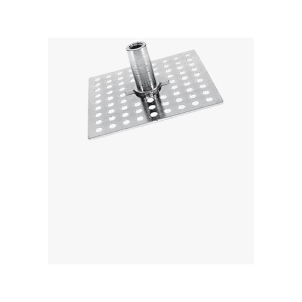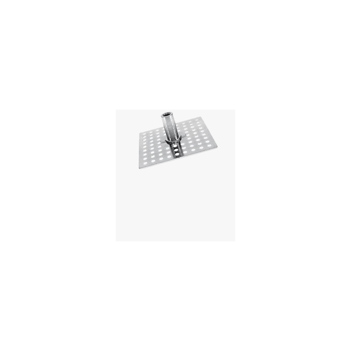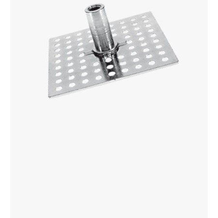 Elementos de fijación con casquillo roscado de cabeza cuadrada de 58 x 58 mm cerrados en acero inoxidable. Dimensiones: diámetro de la rosca 10 mm y longitud 20 mm.