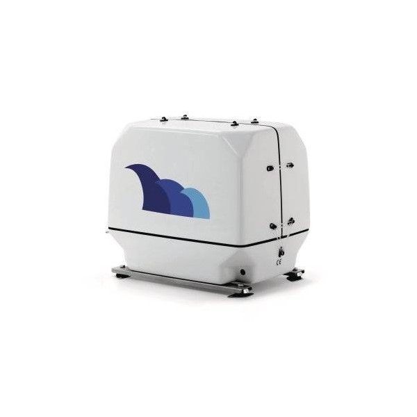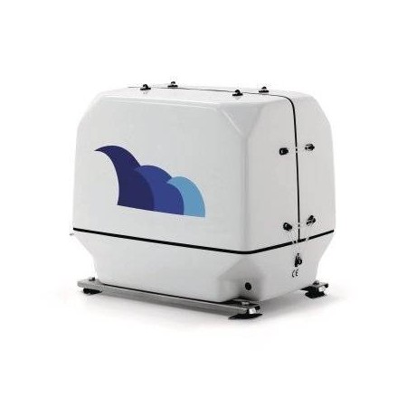 El motor y el alternador de los generadores Paguro están refrigerados por agua. Por lo tanto, no llevan ventiladores, lo que reduce considerablemente el ruido. Además, la carcasa exterior tiene una única y pequeña abertura de entrada de aire de combustión con un recorrido laberíntico para reducir en gran medida el ruido asociado. La carcasa exterior está fabricada en fibra de vidrio multicapa reforzada y recubierta de neopreno de alta densidad, lo que garantiza el máximo aislamiento acústico.
