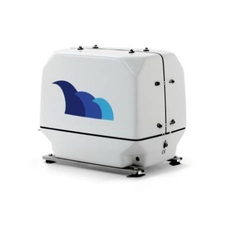 El motor y el alternador de los generadores Paguro están refrigerados por agua. Por lo tanto, no llevan ventiladores, lo que reduce considerablemente el ruido. Además, la carcasa exterior tiene una única y pequeña abertura de entrada de aire de combustión con un recorrido laberíntico para reducir en gran medida el ruido asociado. La carcasa exterior está fabricada en fibra de vidrio multicapa reforzada y recubierta de neopreno de alta densidad, lo que garantiza el máximo aislamiento acústico.