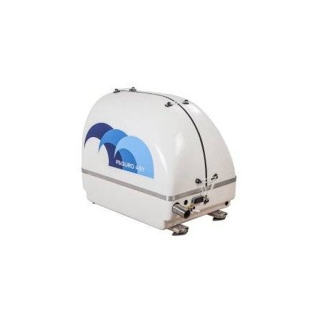 El motor y el alternador de los generadores Paguro están refrigerados por agua. Por lo tanto, no llevan ventiladores, lo que reduce considerablemente el ruido. Además, la carcasa exterior tiene una única y pequeña abertura de entrada de aire de combustión con un recorrido laberíntico para reducir en gran medida el ruido asociado. La carcasa exterior está fabricada en fibra de vidrio multicapa reforzada y recubierta de neopreno de alta densidad, lo que garantiza el máximo aislamiento acústico.