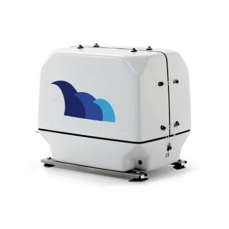 El motor y el alternador de los generadores Paguro están refrigerados por agua. Por lo tanto, no llevan ventiladores, lo que reduce considerablemente el ruido. Además, la carcasa exterior tiene una única y pequeña abertura de entrada de aire de combustión con un recorrido laberíntico para reducir en gran medida el ruido asociado. La carcasa exterior está fabricada en fibra de vidrio multicapa reforzada y recubierta de neopreno de alta densidad, lo que garantiza el máximo aislamiento acústico.