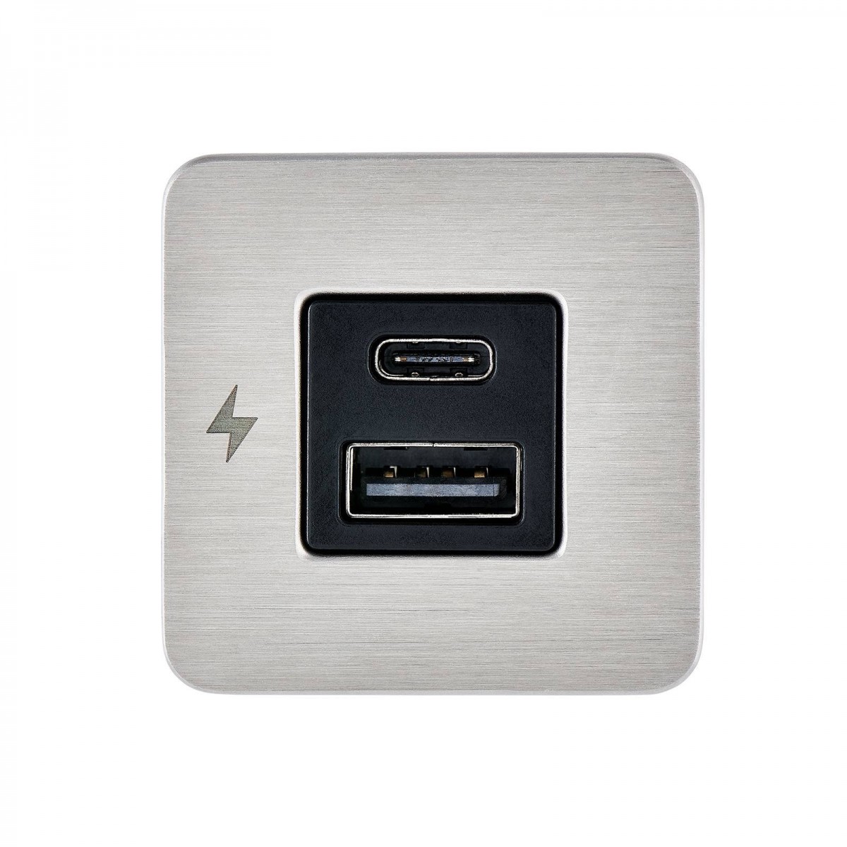 Cargador USB para interiores-A / USB-C - Acero inoxidable