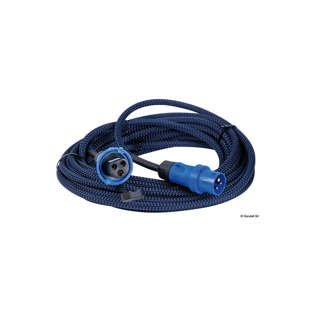 Cable de conexión a tierra Cruiser de 10 m, equipado en el lado de la embarcación con una toma de 16 A y en el lado de la costa con un conector industrial trifásico. Su cubierta de poliéster resistente evita el desgaste y tiene un aspecto marino, lo que garantiza una conexión a tierra duradera y fiable.