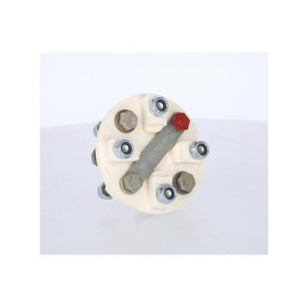 El disco de poliuretano moldeado absorbe los golpes, las vibraciones, el ruido, el empuje de la línea del eje y los desajustes temporales. Aísla eléctricamente la línea del eje. Sin desgaste ni mantenimiento. Se suministra con todos los tornillos y pernos.