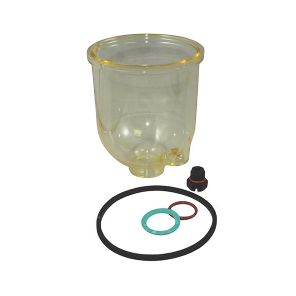 Kit de cazoleta transparente Parker Racor para la serie Turbine. Incluye una cubeta transparente, una junta de cubeta y un kit de tapón. La cubeta está equipada con un orificio de purga de 7/8"-14 para facilitar el vaciado y el mantenimiento rápido a bordo.