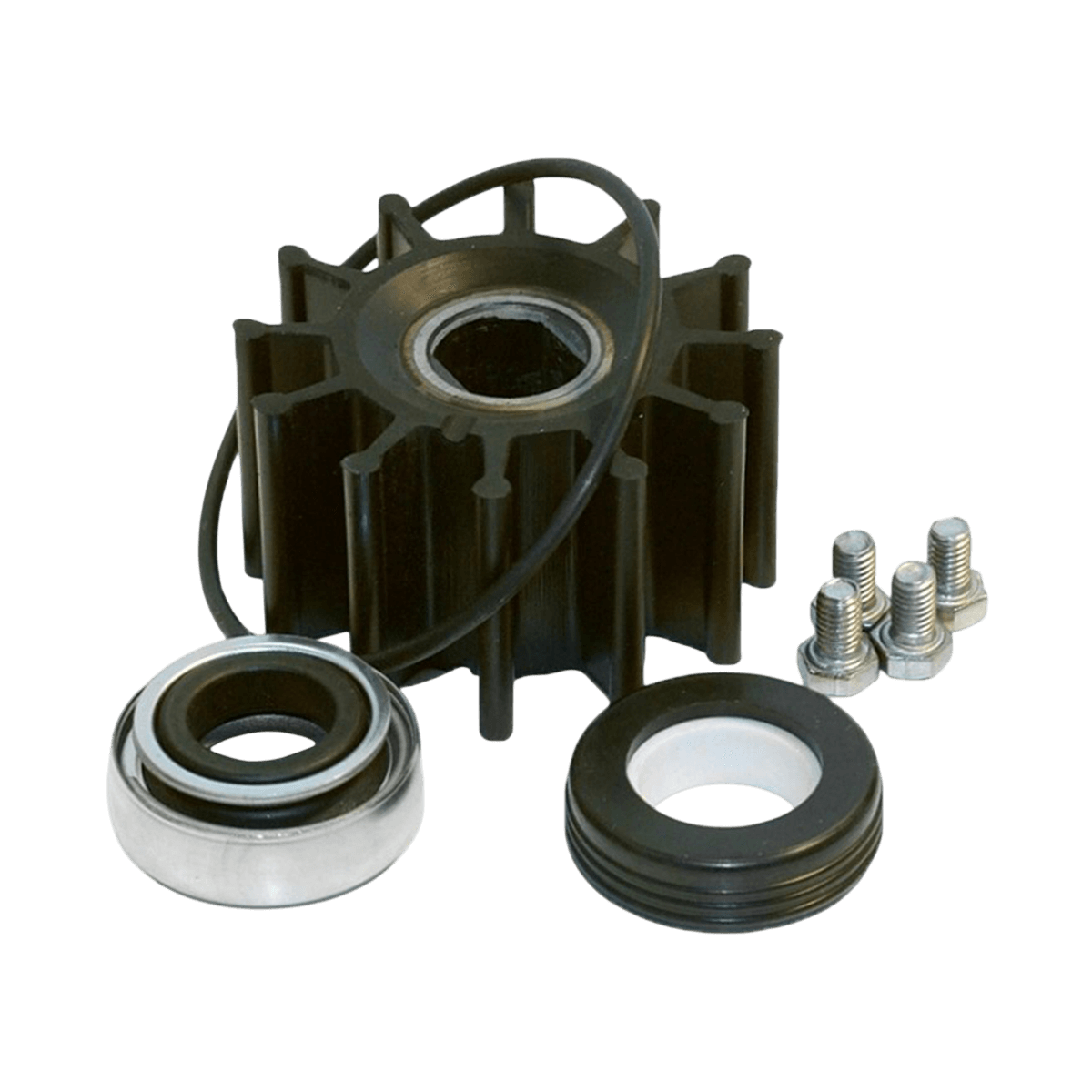 Kit de mantenimiento Jabsco para bombas de las series Utility 53040/53041. Incluye un impulsor de nitrilo, una junta tórica, un cierre mecánico y los tornillos de la tapa para que su bomba marina vuelva a estar a punto. Útil para el mantenimiento preventivo, restablece la estanqueidad y el caudal del circuito de agua de a bordo, y reduce las averías.
