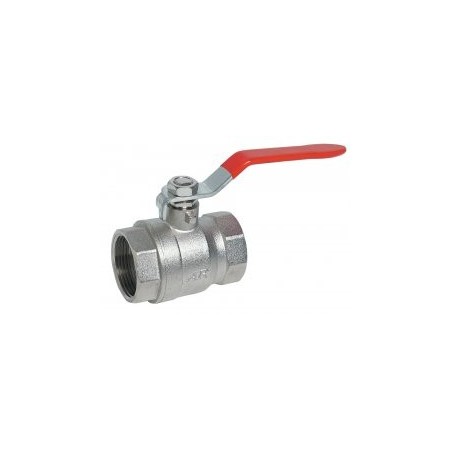 Paso total. Cuerpo de latón niquelado, bola cromada, maneta plana de acero.