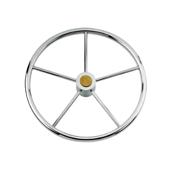Volante de barco de acero inoxidable de 5 radios y Ø 500 mm de diámetro.