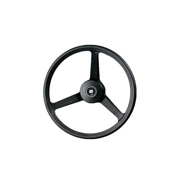 El volante V32B del fabricante italiano Ultraflex cuenta con 3 radios equidistantes en termoplástico resistente a los impactos y una empuñadura de tacto duro. También tiene un diámetro de 3/4" con buje y tapacubos incluidos.