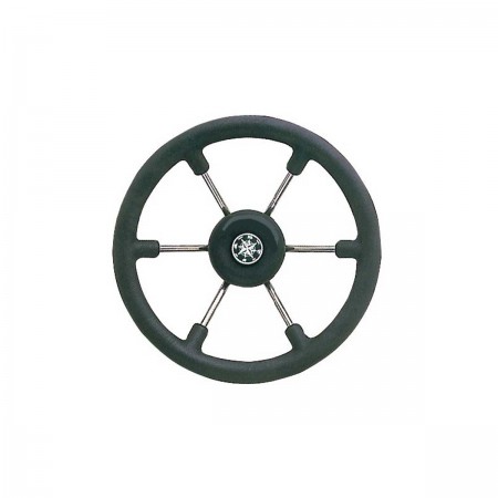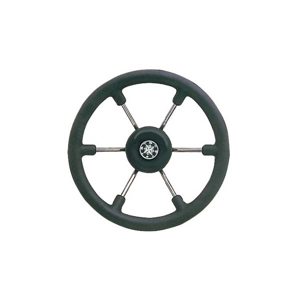 Volante de poliuretano para embarcaciones, Ø 340 mm, 6 brazos de acero inoxidable.