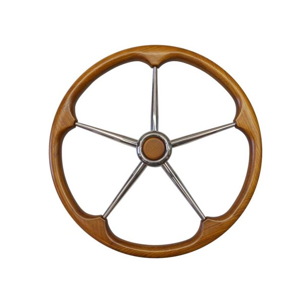 Añada un toque tradicional a su embarcación con el timón de teca T8T. Su corona de teca y sus 5 radios cónicos de acero inoxidable resistirán los elementos mientras navega.