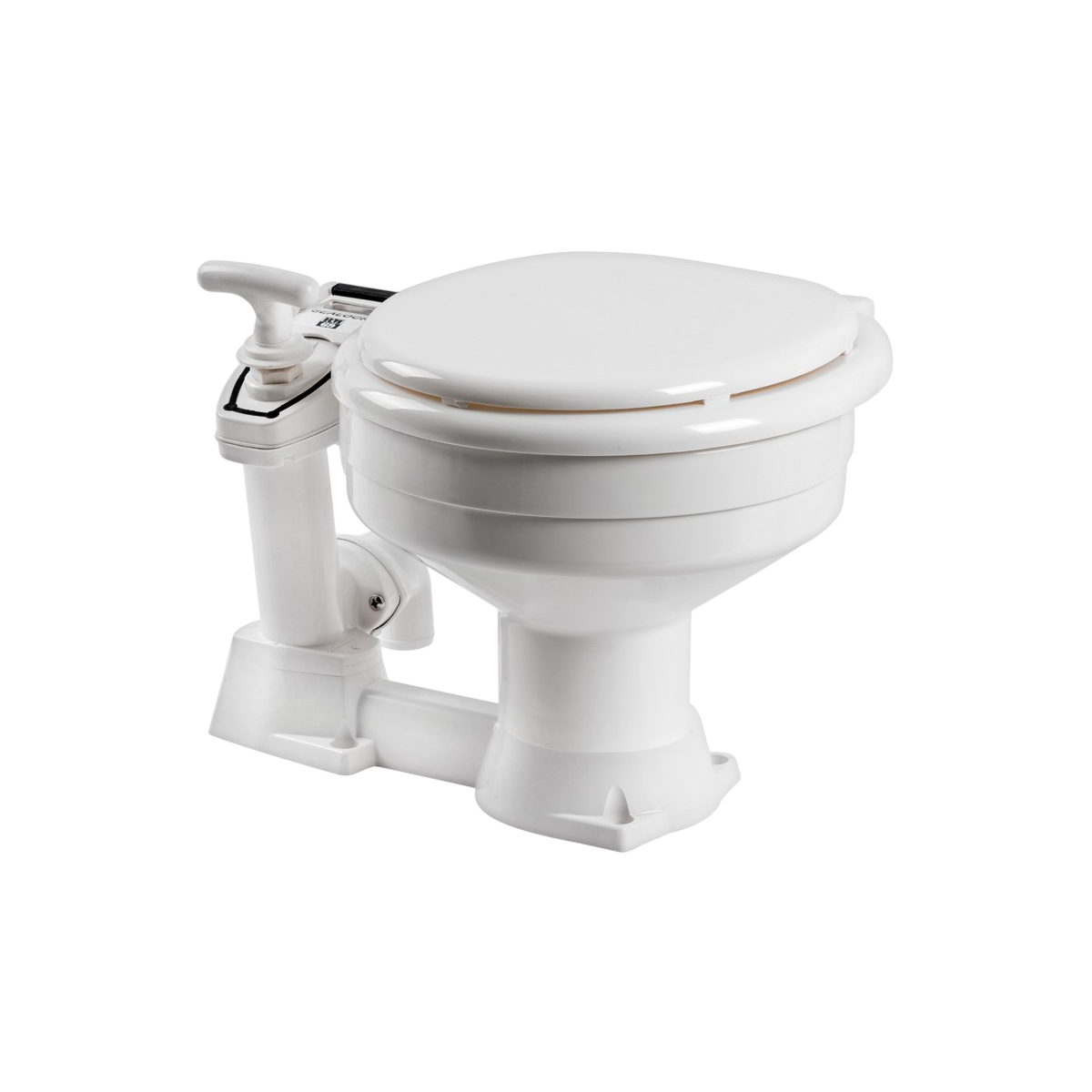 Diseñado pensando en la navegación, este inodoro marino manual combina un aclarado eficaz con el ahorro de agua cada vez que se utiliza. Su diseño compacto hace que quepa fácilmente en cualquier espacio a bordo.